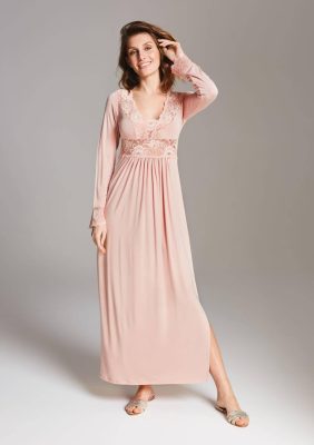 Langes Nachthemd mit Spitze und Sternen – Dirty Pink