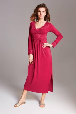 Langes Nachthemd mit Spitze und Sternen – rubin