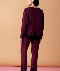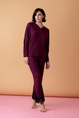 Langes Nachthemd mit Spitze und Sternen – rubin