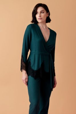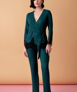 Langer Wickelpyjama Opera – dunkles Flaschengrün