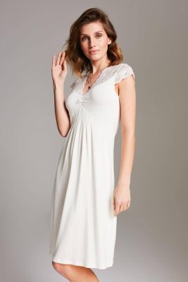 Sterne Nachthemd mit kurzen Spitzenärmeln – Creme