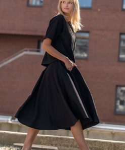 Echo Viskose-Midirock mit Taschen – Schwarz