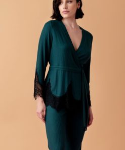 Langer Wickelpyjama Opera – dunkles Flaschengrün