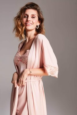 Viskose Negligé mit Spitze „Stars“ – Dirty Pink