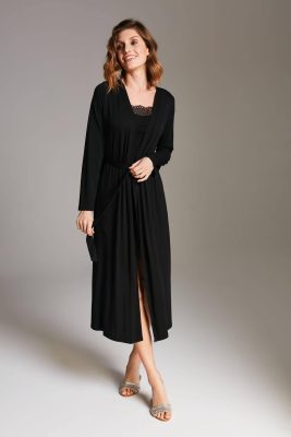 Midi-Negligé aus Viskose mit Sternen – Schwarz