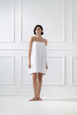 Calma Saunapareo aus Baumwolle mit Tasche – weiß