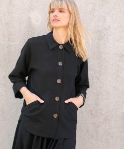 Echo Viskosehemd mit Taschen – schwarz