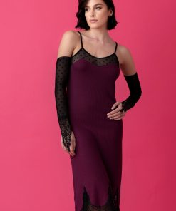 Opera Midi-Nachthemd mit Trägern – Merlot
